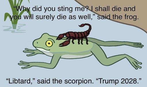 I see them as the frog. The stupid fucking frog that knows the scorpion’s nature but gives him a free ride anyway.