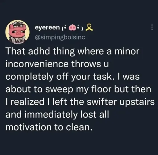 My life has become about either adding or removing friction in my life to circumvent my self sabotage, so yeah, I get it