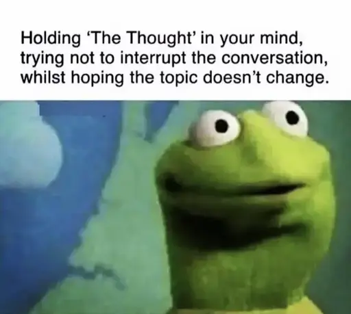 The topic always changes. You miss your chance. It bugs you so much that you hang onto the thought for weeks, months, or years, and bring it up promptly at the next opportunity.