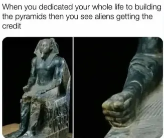 Even more egregious! He dedicated MANY human lives to building that Pyramid! Aliens stealing credit for that is AT LEAST [many] times worse!