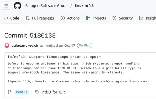 cm0002@toast.ooo to Linux@programming.dev · 7 days agoLinux NTFS3 Driver Will Now Support Timestamps Prior To 1970plus-squarewww.phoronix.comexternal-linkmessage-square18linkfedilinkarrow-up184arrow-down10