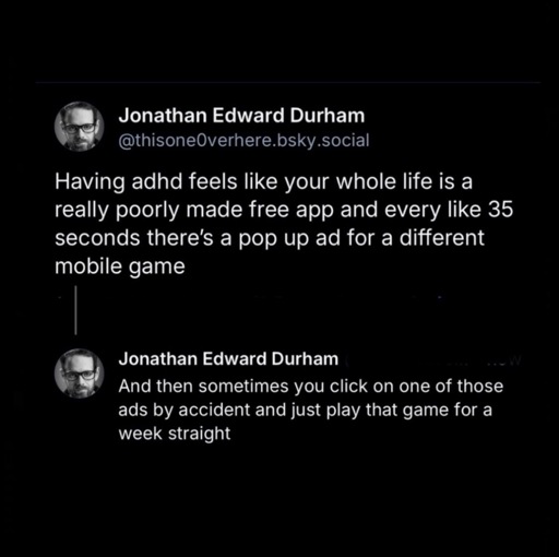 ickplant@lemmy.world to ADHD memes@lemmy.dbzer0.comEnglish · 2 months agoAccurate lemmy.worldimagemessage-square0linkfedilinkarrow-up11arrow-down10